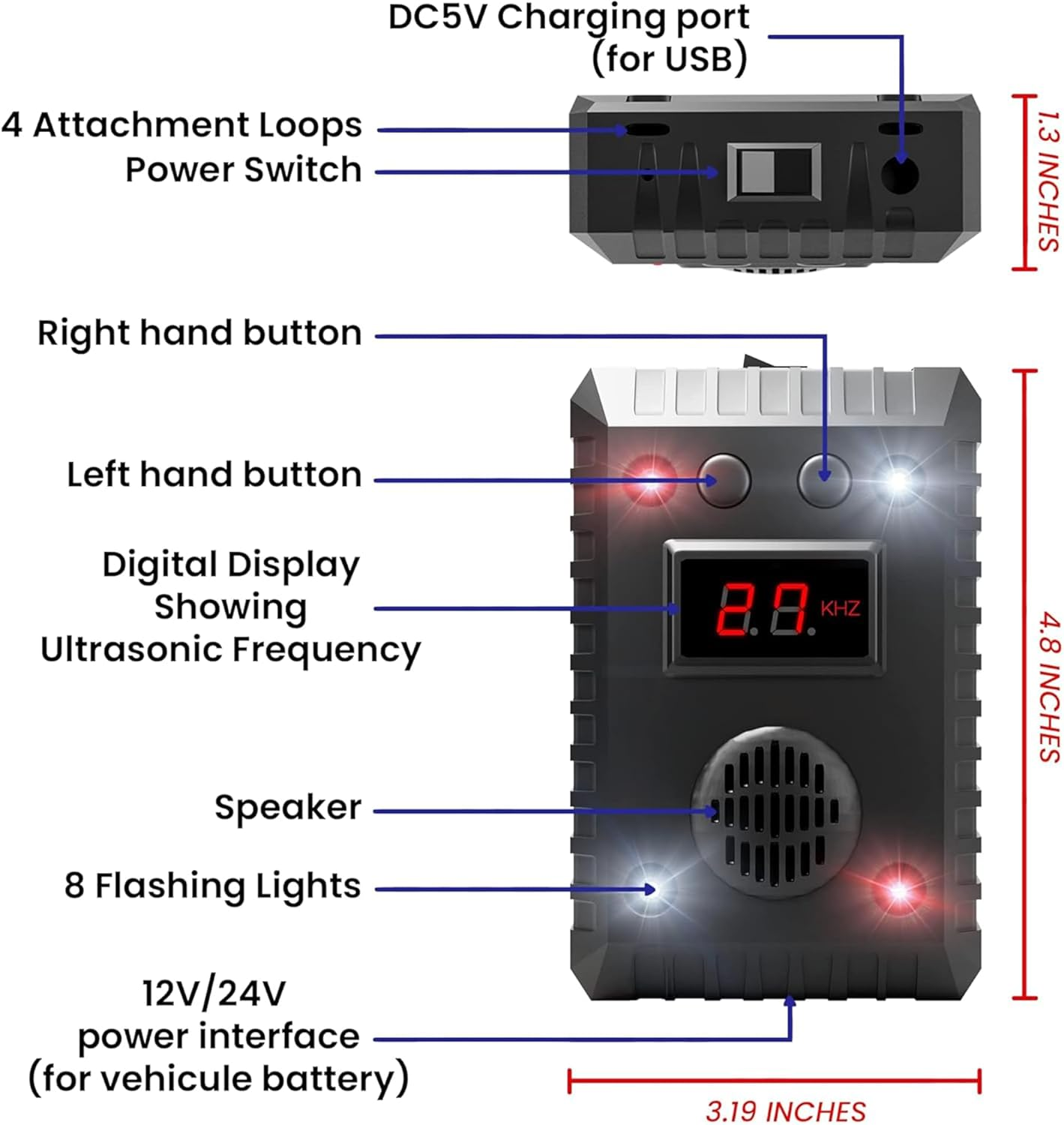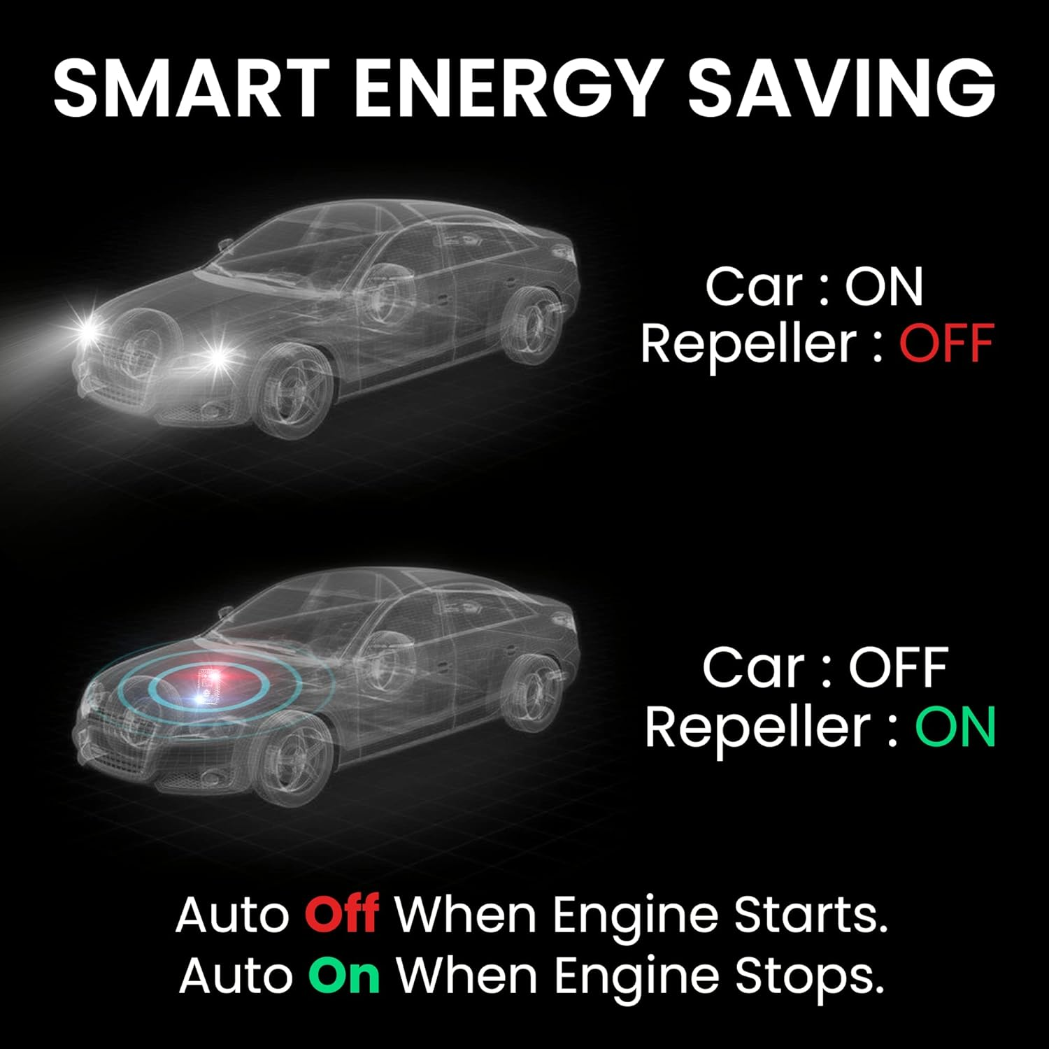 WON’T DRAIN CAR BATTERY: This electronic mouse repellent device is powered by your car battery via the included charging cable. If your vehicle battery drops below 9.2V, the device will automatically turn off to ensure your battery won’t die. Once the battery charge exceeds 9.2V again, the device will automatically turn back on.