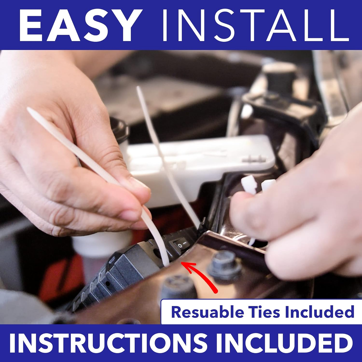 PROTECT YOUR CAR FROM RODENT DAMAGE : This easy to install under hood rodent repeller prevents rodents (rats, mice, squirrels, martens, chipmunks etc) and other pests from making nests in your car and chewing through the wires. It does this by emitting a combination of ultrasound and strobe lights which rodents hate. 4 reusable plastic ties are included so you can easily attach the device to your engine.